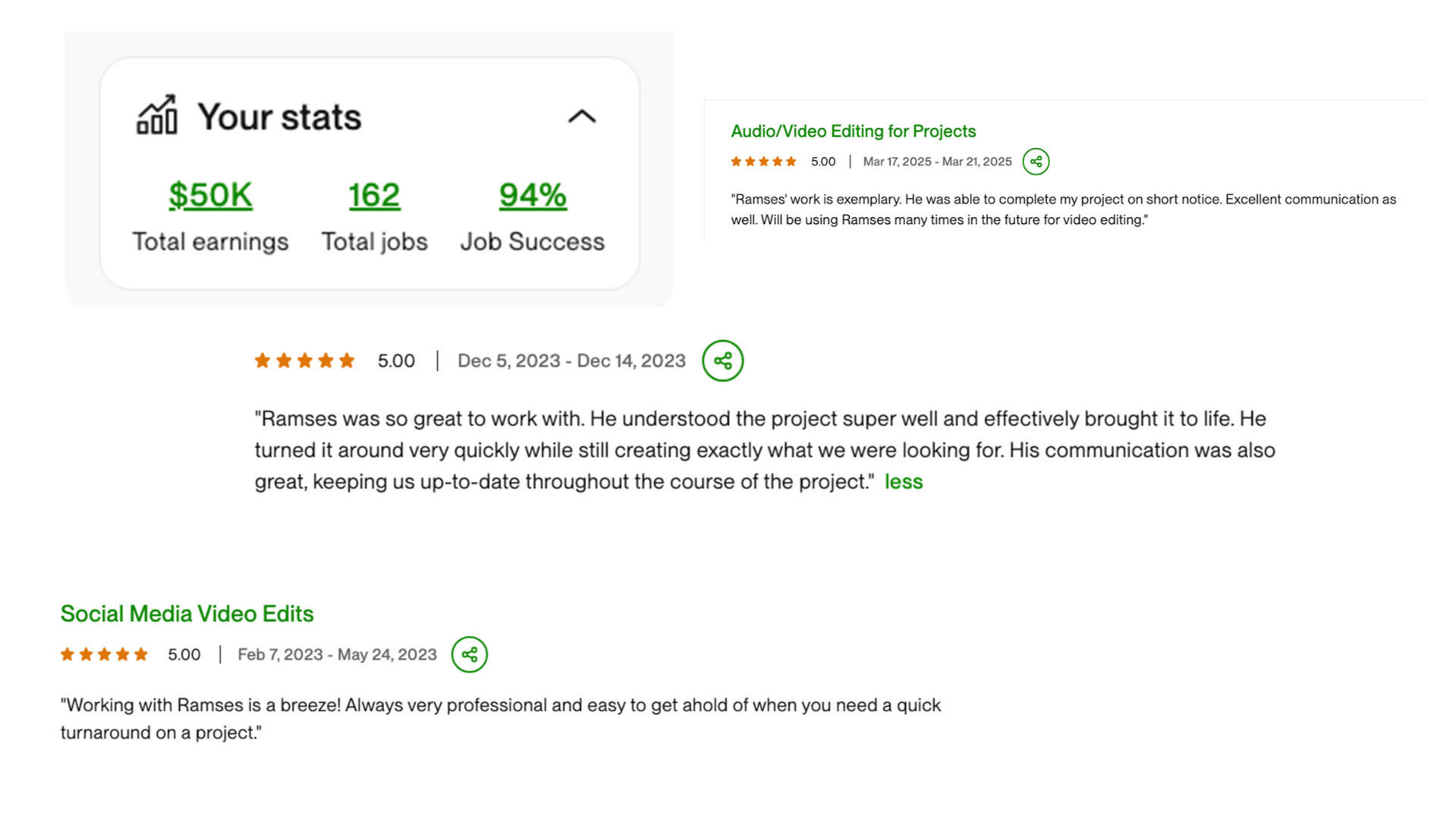 I’m also a Top Rated Plus freelancer on Upwork, where I’ve personally made over $50K+ on the platform working with over 200 different clients on different projects